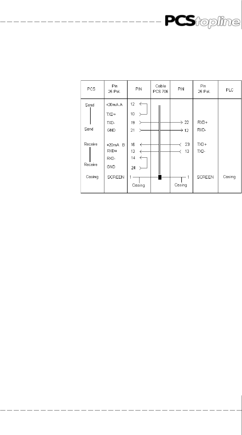 Adapter cable PCS 706 Connection PCS to PLC via TTY interface